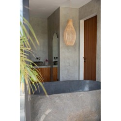 Cette suspension en rotin - qui peut également être utilisée comme lampadaire - ne prend presque pas de place horizontalement, alors pourquoi ne pas en accrocher ou en placer quelques-unes ?.